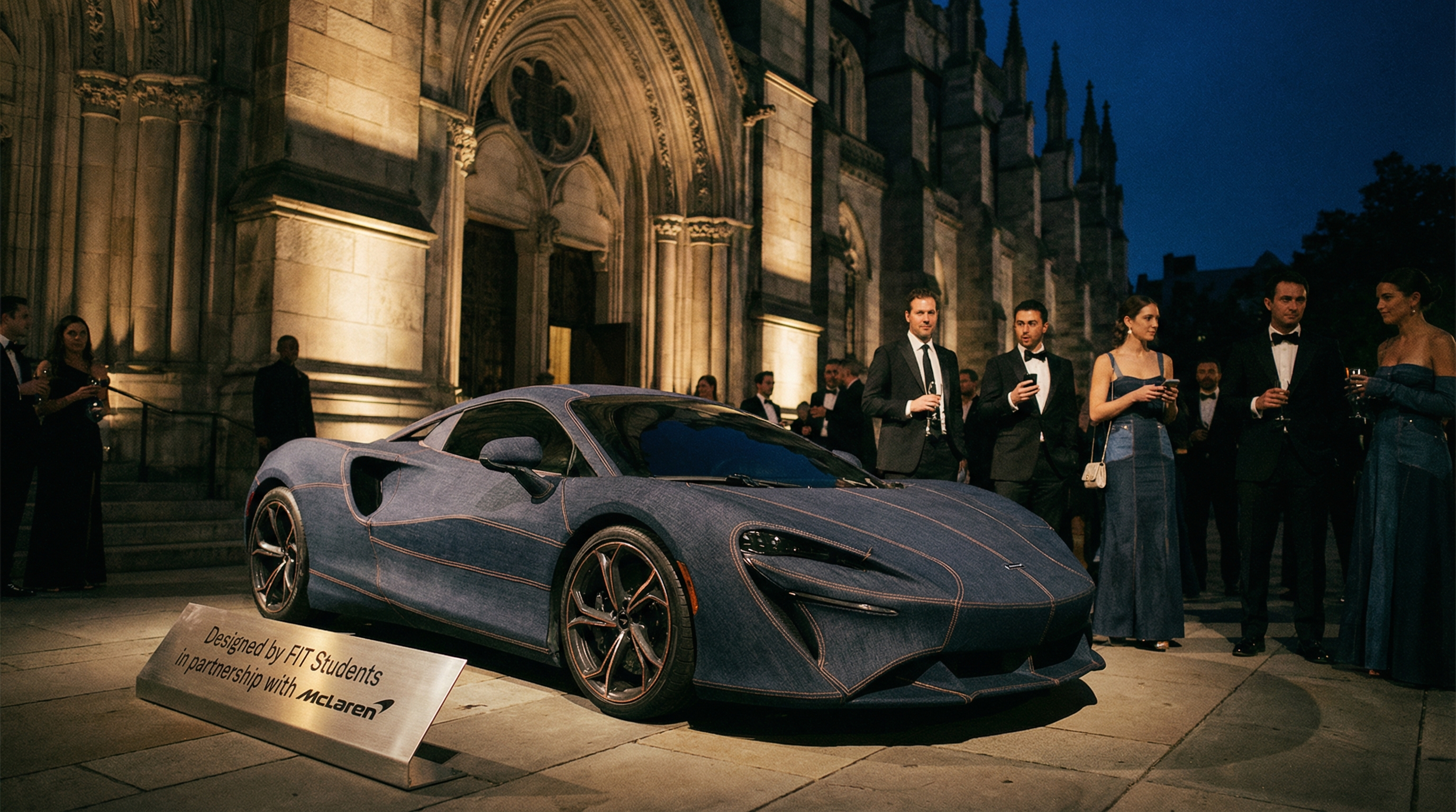FIT proposes a creative partnership to create a custom student-designed vehicle wrap for a McLaren car, showcased prominently outside the venue on the night of the Gala.